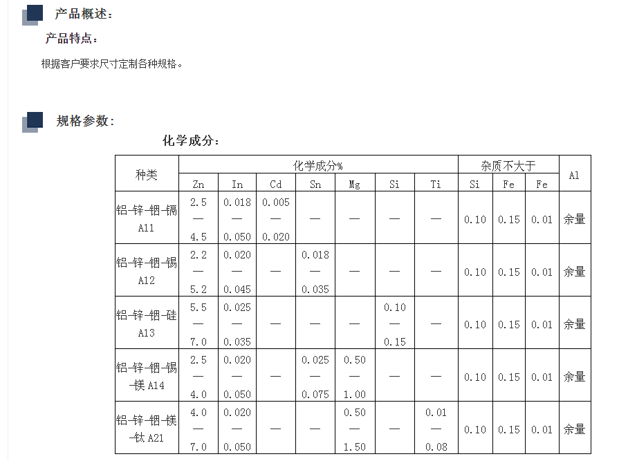 (1)普通鋁合金犧牲陽(yáng)極;