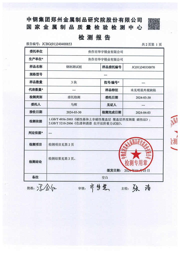 測樁試附著力及測厚檢測報告